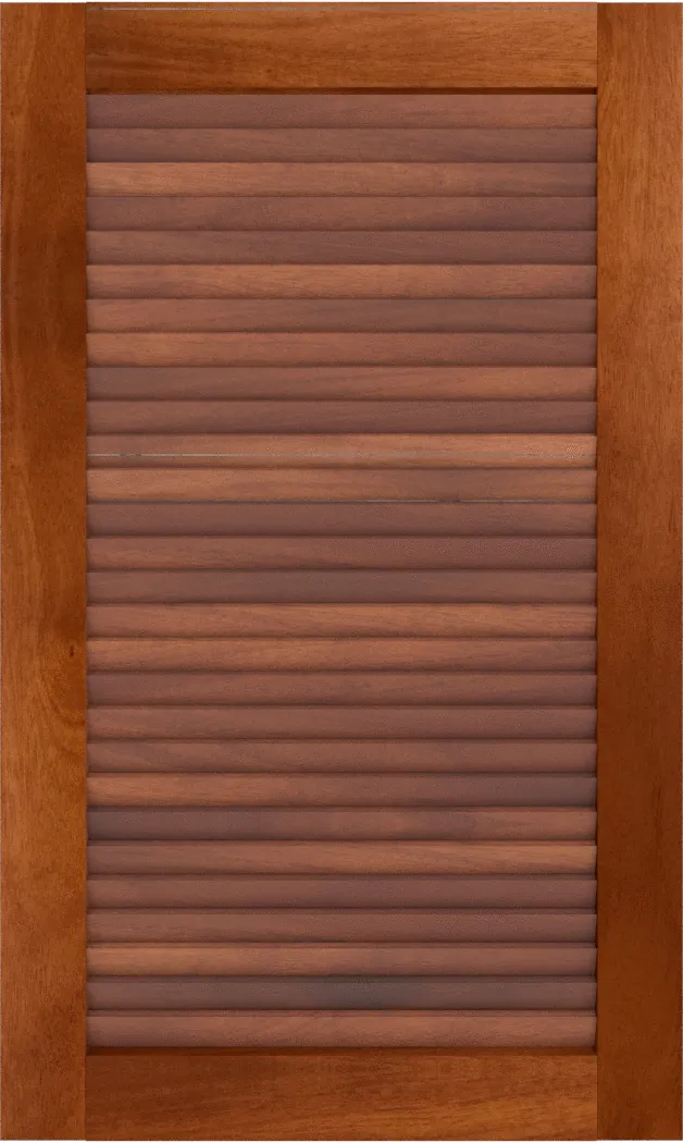 Indulge in the luxurious charm of our louvered kitchen cabinet doors, meticulously crafted from premium mahogany to infuse your culinary space with warmth and sophistication. Our doors boast solid mortise and tenon joints, meticulously crafted to ensure enduring strength and durability. Deep-seated louvers, adorned with rich profiles, add a touch of tradition and depth to your kitchen decor, elevating it to a new level of elegance.