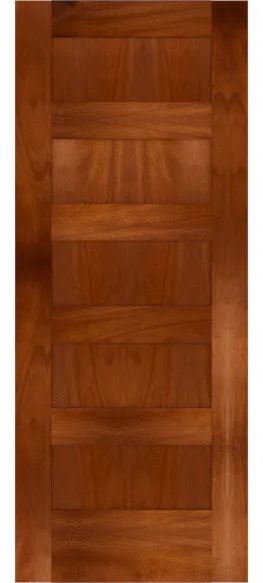 Mass-produced doors from home improvement stores are typically hollow-core or use engineered cores with veneer faces. They come in standard sizes and limited styles. A custom solid wood door from Estate Millwork is built to your exact dimensions, from the wood species you choose, in the style you want. Every component is solid hardwood, assembled with time-tested joinery. The visual difference between a solid Mahogany door and a hollow-core veneer door is immediately apparent. Solid wood doors also offer superior sound insulation, thermal performance, and a substantial feel that cannot be replicated by lightweight alternatives.