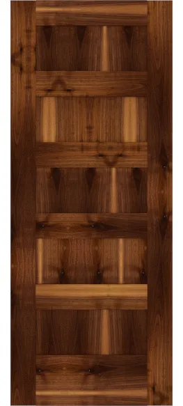 American Black Walnut is North America's premier dark hardwood, prized for its naturally rich chocolate-brown color that requires no stain to achieve its signature warmth. Its flowing grain patterns and occasional figure give each door a unique character that celebrates the natural beauty of the wood. Walnut is remarkably easy to work despite its premium status, producing doors with crisp profiles and smooth surfaces. It is the definitive choice for statement doors in high-end interiors — libraries, master suites, executive offices, and formal entries. A Walnut door commands attention through the sheer beauty of its natural color and grain, delivering a warmth and sophistication that lighter woods can only approximate through staining.